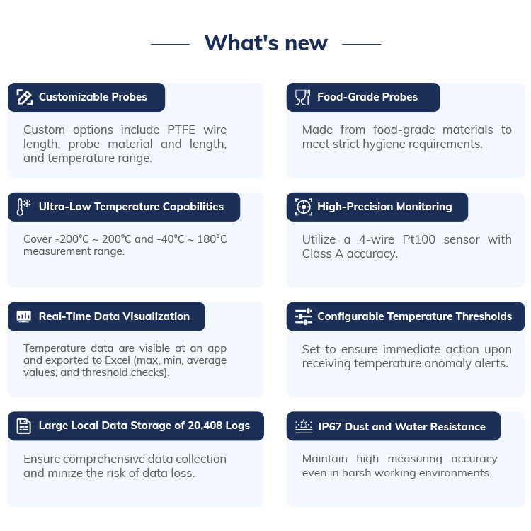 | Measurement Parameters | Temperature and humidity threshold alarms ... |